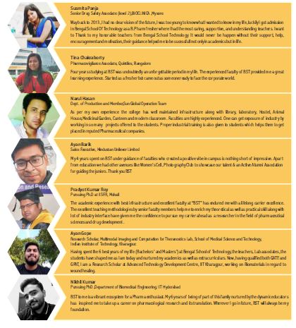 The direction in which education starts a man will determine his future life. My college BST gives me that education to direct my professional career in the field of pharmaceutical process research & development. It was a matter of great pleasure and distinct honour to be a part of BST. I am really happy to learn that in last 15 years a new pharmacy college started with 60 students has grown up into a full fledged leading pharmacy college in West Bengal and imparted education to thousands of students from India.