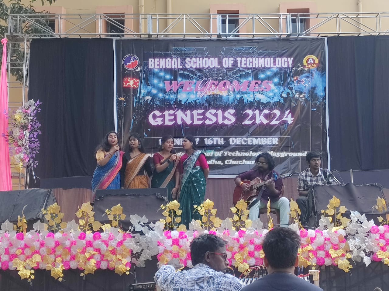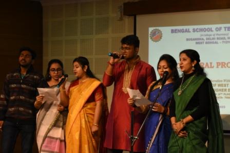 The cultural heritage of West Bengal is considered to be one of the finest and richest cultures in India. Being a part of this culture, Bengal School of Technology also contributes for keeping up the name. Our cultural committee comprises of faculties along with students and celebrates different programmes throughout the year. As the session begins we welcome the fresher students at Genesis. This is followed by the welcoming of Goddess Durga on the eve of Durga Puja and the event is named as Agomoni. The cultural committee also organizes a two day program comprising of Fest(Inferno) and Reunion of Alumni(Nostalgia). The Bengali New Year starts from 15th if April which is also welcomed by cultural program called Borsho Boron. Students as well as staffs are fully involved and participate in these programs.